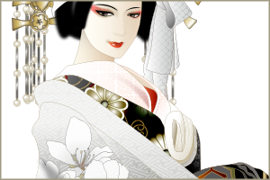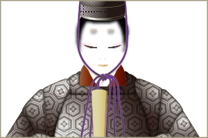 白狐面に雅楽風の装束 白狐は年を経て神通力を持つようになった狐。稲荷信仰のお使いで神獣です。