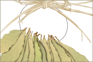日本名で月桂樹。乾燥したものを煮物などに香辛料として使いますね。 こんな風にあしらって、キッチンの壁の飾りなんかにしても素敵だと思います。