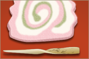 きな粉などの大豆の粉に水飴を加えて練りあわせて作る和菓子の一種です。 州浜型といって、州浜を上から見下ろしたような、三つの輪をずらして繋げた形を模しています。