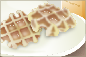 オランダ語で蜂の巣を意味するwafelに由来します。 確かに蜂の巣のような見た目ですよね。シロップをたっぷりかけていただくのがよろしいかと。