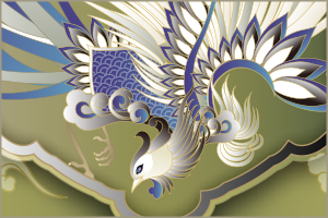 平和と繁栄の象徴 伝説上の瑞鳥で大変おめでたい鳥です。 良く朱雀と混同されるようですが、朱雀は方位を司る四神のひとつで神獣 鳳凰は聖なる鳥、聖獣と格差があるようです。