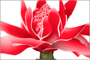 熱帯アジアを原産とする花です。 色といい形といい、熱帯の植物感満載ですね。 シャチの入ったガラス瓶に挿してみましたが、何かちょっと違うでしょうか。