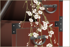 自在鉤と階段箪笥を枝垂れ桜で飾ってみました。