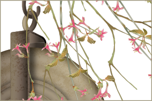 日本固有の落葉低木で春に開花します。 古びた滑車にくくりつけてみました。