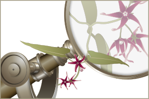 拡大鏡とそのスタンド。 まとわりついているのはコバノカモメズルという植物です。