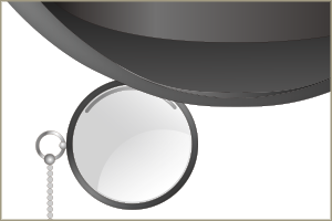 片眼鏡ですね。片目での使用を前提とした単一レンズの眼鏡です。 やっぱりクリスティーの名探偵ポワロを意識してしまうので、シルクハットと髭は必携でした。