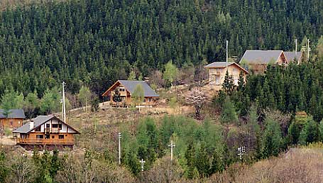 その人たちはおおむねログハウスを建てることが多いようですね。 それぞれこだわりの我が家を持っていて、よそのうちを誉めつつも、心の中では我が家が一番、と誰しも思っているそうな。 |